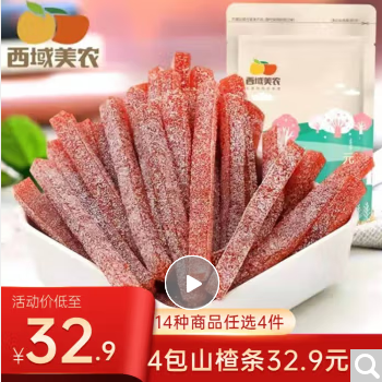 西域美农 原色山楂片山楂条 休闲零食 蜜饯果干山楂小吃 雪花山楂条200g 秒 杀 价 ¥ 9.90