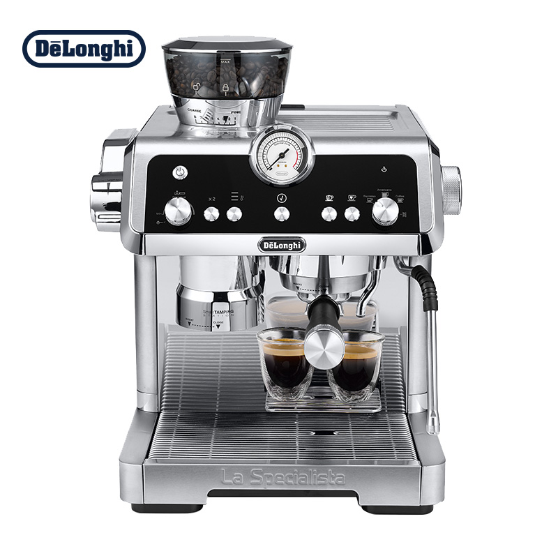 德龙(Delonghi)咖啡机 骑士系列半自动咖啡机 感应研磨 智能压粉 升级滤网 专业3孔蒸汽杆 EC9355.M 银色