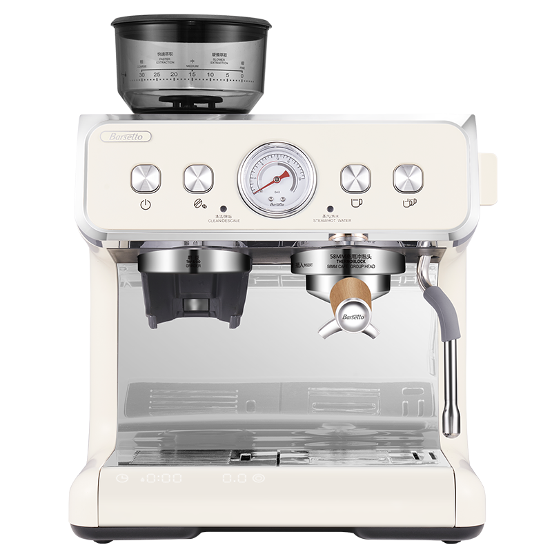 Barsetto /百胜图二代S双锅炉半自动咖啡机家用意式研磨一体机 米白色