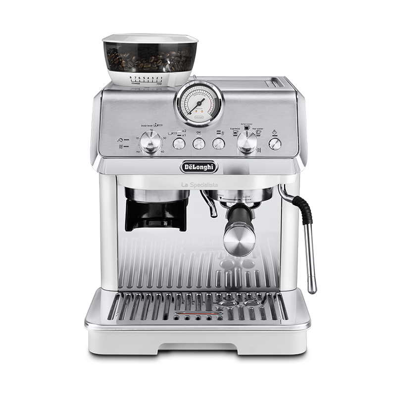 德龙(Delonghi)咖啡机 骑士系列半自动咖啡机 意式家用 泵压萃取 一体式研磨器 小巧机身 EC9155.W 白色