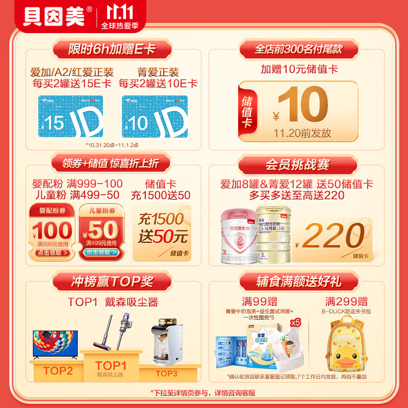 贝因美(Beingmate)菁爱3段幼儿配方奶粉(....京东 推荐人: 丁丁小编 发布时间:2022-11-01 11:23:07