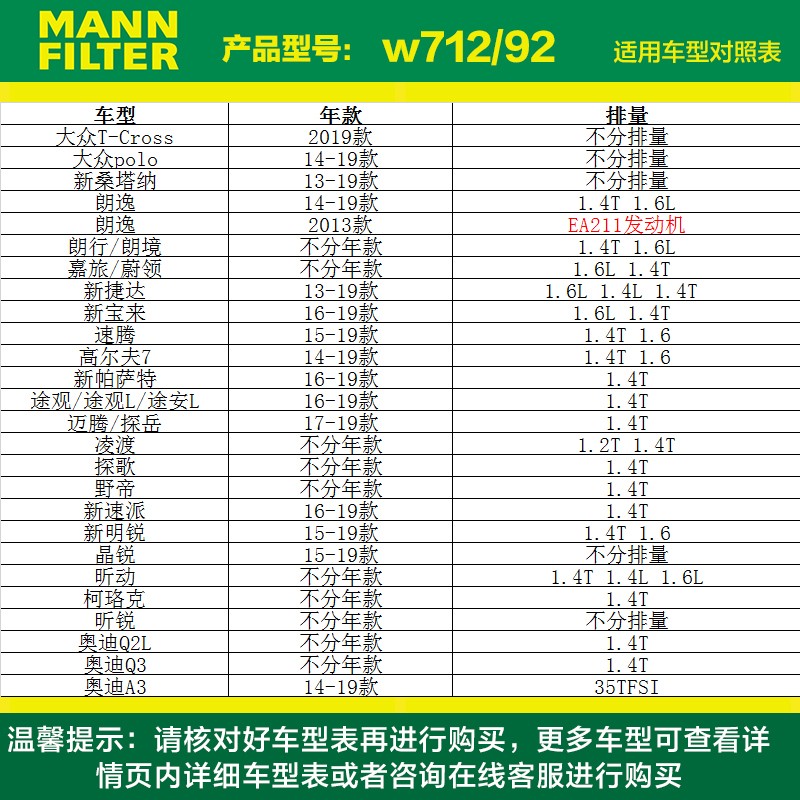 曼牌滤清器W712/92M机油滤芯机油格适用宝来高....京东 推荐人: 丁丁小编 发布时间:2022-12-07 09:00:21