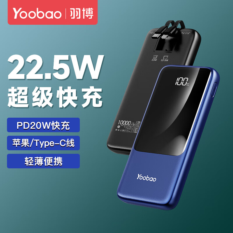 羽博(Yoobao) 充电宝快充自带线10000毫....京东 推荐人: 丁丁小编 发布时间:2022-10-23 16:59:15