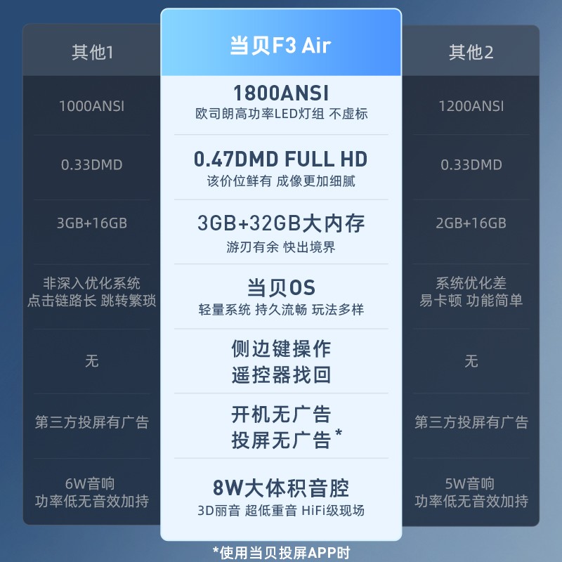 当贝 F3 Air 投影仪家用 投影机(全高清10....京东 推荐人: 丁丁小编 发布时间:2022-09-22 20:17:44