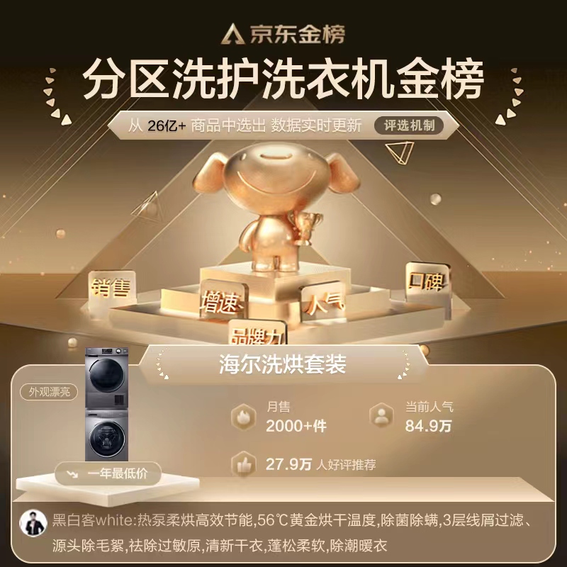 海尔(Haier)56℃热泵洗烘套装 除潮除菌10....京东 推荐人: 丁丁小编 发布时间:2022-08-31 20:57:18