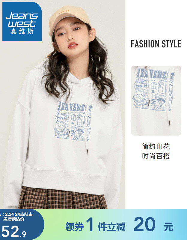 真维斯女装ins风上衣 春秋季女士降落伞印花连帽短....京东 推荐人: 丁丁小编 发布时间:2022-12-23 11:34:25