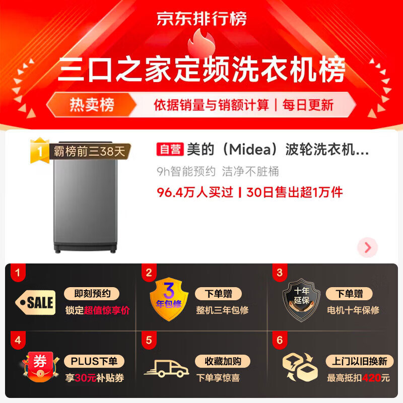 美的(Midea)波轮洗衣机全自动 10公斤专利免清洗十年桶如新 立方内桶 水电双宽 MB100V13B 以旧换新京东 推荐人: 丁丁小编 发布时间:2022-11-01 16:28:12