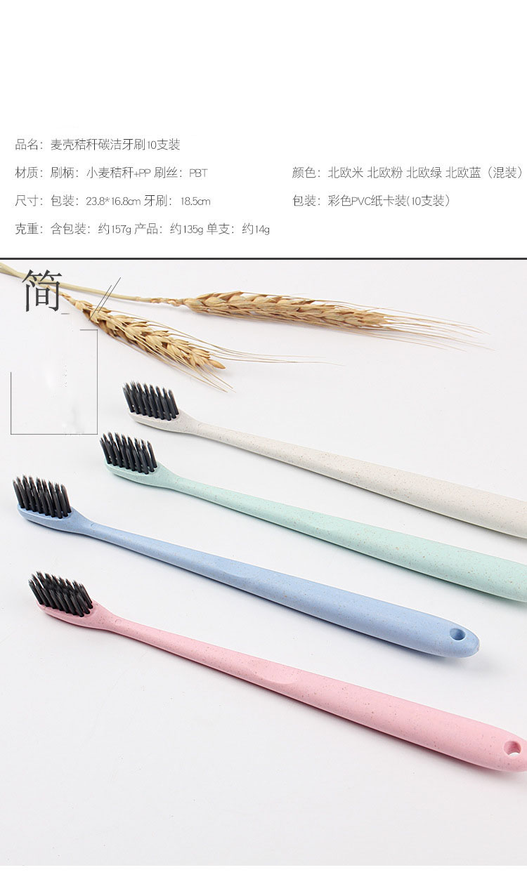 商品名称:小麦秸秆成人竹炭牙刷10支装软毛牙刷