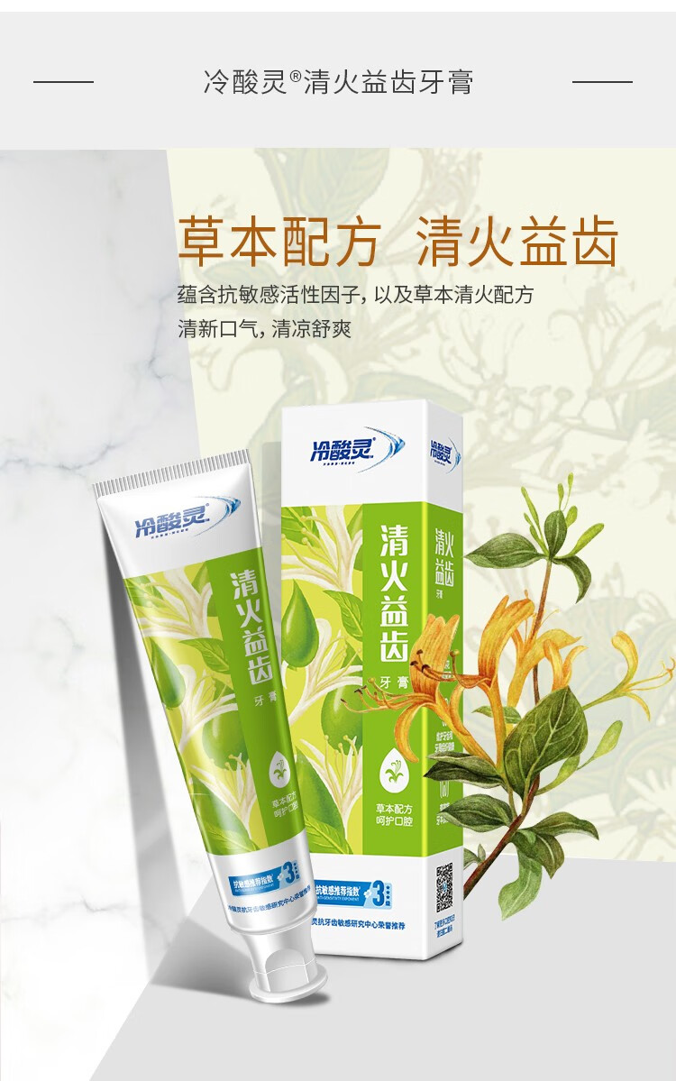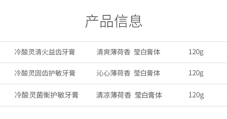 商品名称:冷酸灵牙膏清火牙龈护理牙膏去火清新口气牙膏 固齿护敏120g