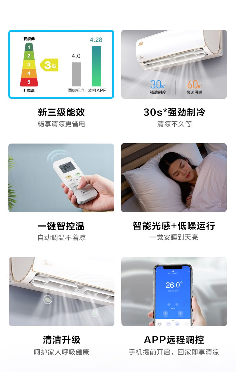 更多Midea 美的KFR-35GW/N8MHA1 1.5匹 变频 壁挂式空调
