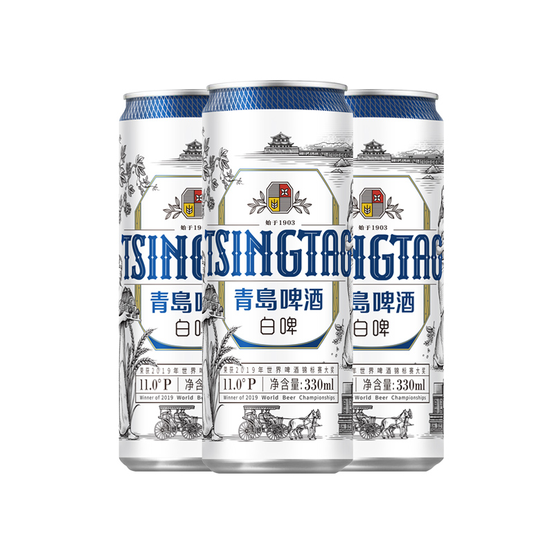 青岛啤酒(TSINGTAO)这款全麦白啤,选用水、大麦芽、小麦芽、酵母、啤酒花及制品为配料酿制而成。酒液色泽金黄,散发麦芽香与花果香,泡沫绵密丰富,口感醇厚顺滑。建议饮用温度为8℃-15℃。茶色玻璃瓶身,外观具产品信息贴标,图文并茂。麦芽浓度10.0°P,酒精度≥3.7%vol。规格:330ml*24听。