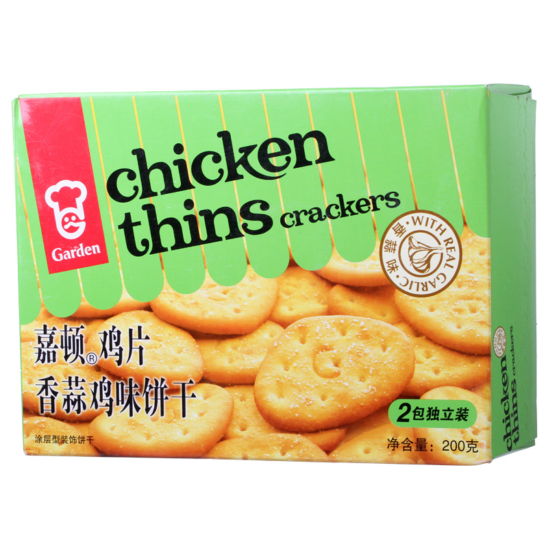嘉顿(Garden)这款香蒜鸡味饼干,配料选用小麦粉、大蒜等,富含蛋白质、脂肪等营养物质,满足人体营养需求。饼干色泽金黄,蒜香浓郁,口感松脆。盒装包装,便于储存。保质期为12个月,请置于阴凉干爽下保存。