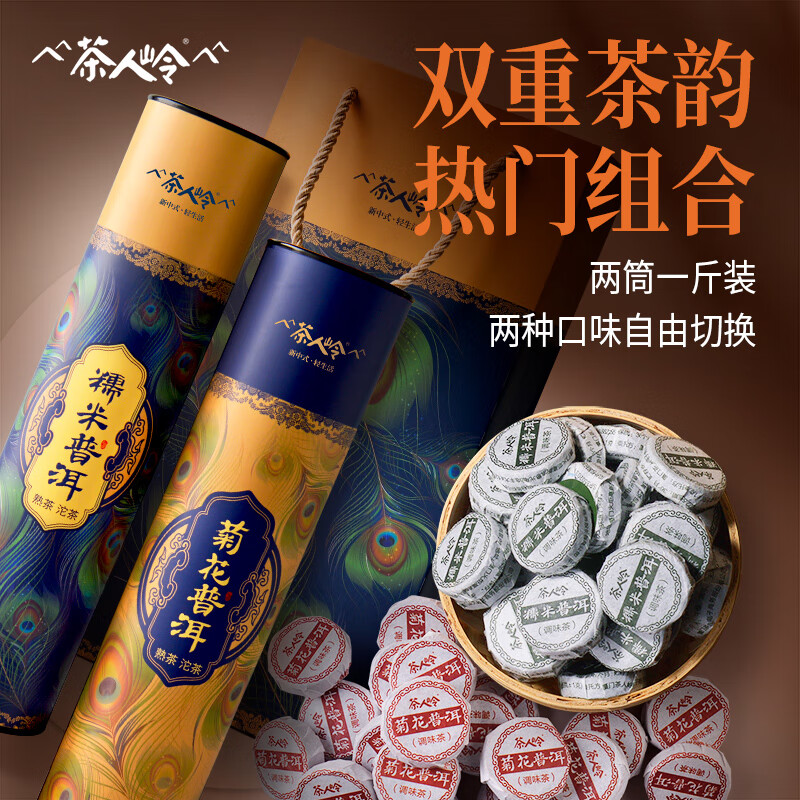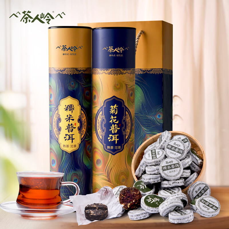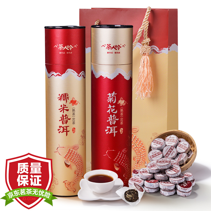 茶人推荐:普洱双拼礼盒,糯米普洱+菊花普洱,一份心意,两重口感享受,送人自饮皆宜。汤质柔滑,糯香四溢,饱满顺滑,水线细腻,淡淡的菊花清香,茶味甘甜。规格:500g。
