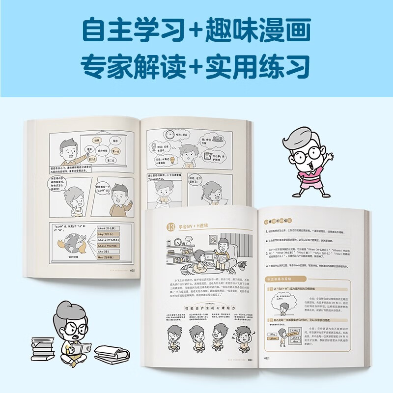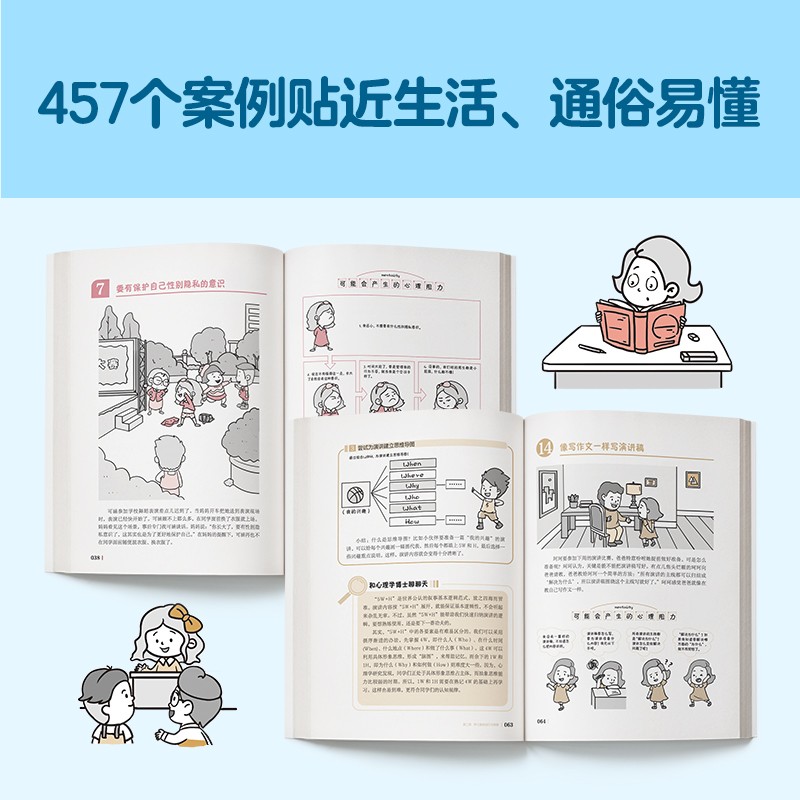 《小学生心理学漫画》是第一套献给小学的6-12岁孩子们的自助心理学读物。本套书目包括12种能力,分别是自信力、社交力、自信力、积极力、情绪自控力、自助力、幽默力、行动力、专注力、学习力、审美力、公开演讲力和性教育。每本书都从孩子真实生活出发,共457个心理案例。诸如想加入新团体、说话是害怕与人对视、不敢表达自己的意见、与压力友好相处、做某些事行动效率低到可怕、专注于最重要的事情、怎样主动排除外界干扰、学会现场学习借鉴等……既培养孩子好性格,也帮助孩子高效学习。