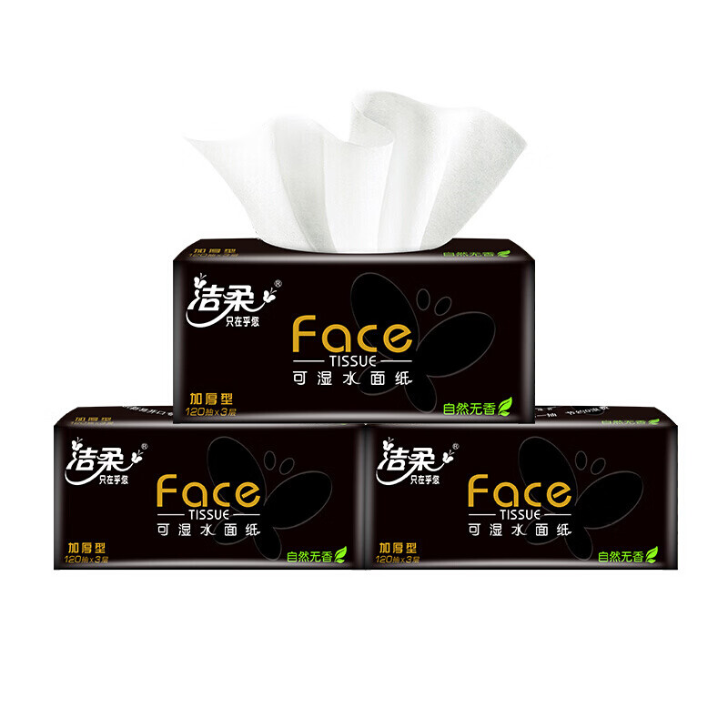 C&S 洁柔 抽纸 3层100抽*30包(195*123mm),原生木浆,细腻柔韧,不易掉屑。柔软亲肤。宝宝可用,弧形压线开口,开口方便。