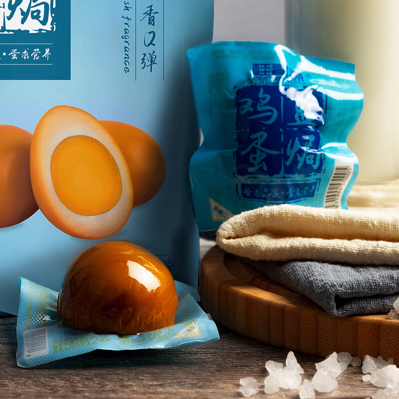 盐焗鸡蛋 ,盐焗蛋经过多种卤料煮制后,低温烘烤焗的入味,各种优质卤料,搭配精心挑选鸡蛋,制作出如此美味。规格:400g。