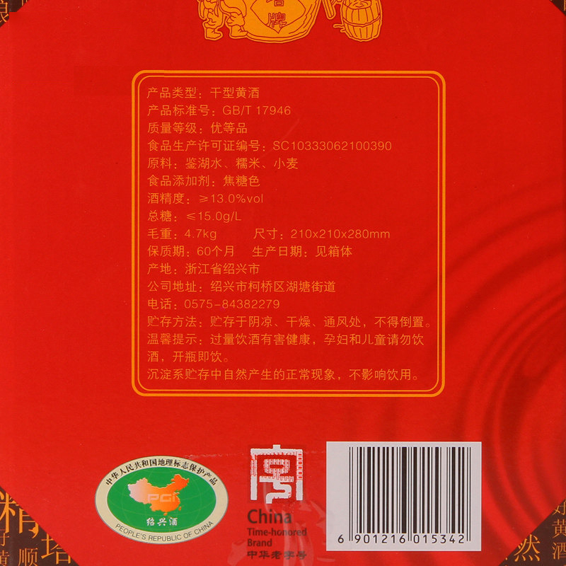 塔牌绍兴酒以其浓馥的酒香、醇厚的口味而闻名。鲜爽畅饮,悦享本色,不加焦糖色,低度为醺,这款醇雕5年手工冬酿用鉴湖水、糯米、小麦等为原料发酵而成,元红以前也被称为状元红,属于干型绍兴酒,酒精度:13%vol。规格:2.5L。