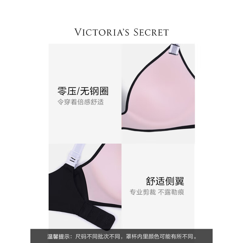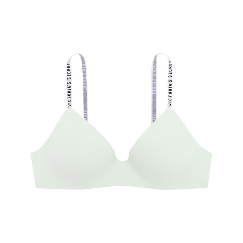 VICTORIA'S SECRET 维多利亚的秘密 11122040 无钢圈聚拢文胸,光滑无痕杯面舒适轻薄衬垫,搭配无钢圈罩杯,舒适透气,无痕侧翼,柔韧有型,令穿着倍感舒适,全新白色LOGO字母肩带+清甜马卡龙色,时尚活力满分,是日常穿着的魅力之选。