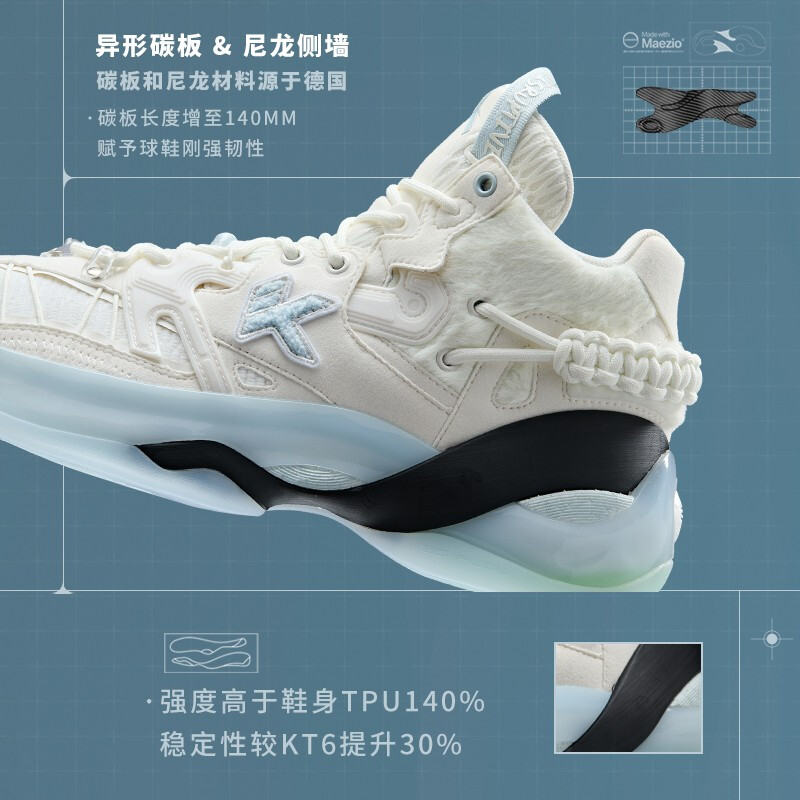 ANTA 安踏 kt7破坏 112141102 男子篮球鞋,鞋面由多种材质拼接交织,解构重组,塑造全新形态。全掌超临界氮气物理发泡,中底重量轻至95G,能量回归率82.6%。安踏氮科技,针对篮球运动进行专业调校,赋予你源源不断动能供应,持续带来高能实战感受。后跟SMART S.A.M.智能分子吸震科技,采用流体防弹材料,冲击量吸收率高达95.4%。后跟吸震,减少落地冲击力,保护膝盖。后跟稳定,材料吸震后变硬,有效支撑。