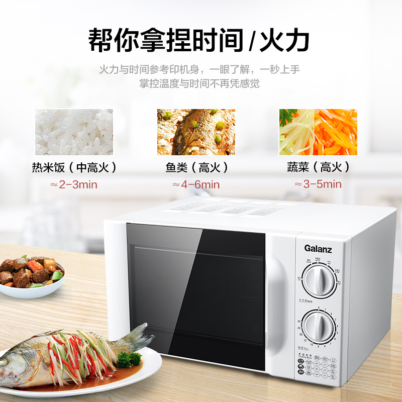 格兰仕(Galanz)这款型号为P70D20TL-D4的微波炉,采用传统的机械转盘和玻璃托盘,经典耐用。6档可调火力,30分钟定时。上下两组排气孔更加合理的将机内热空气抽出,延长使用寿命。