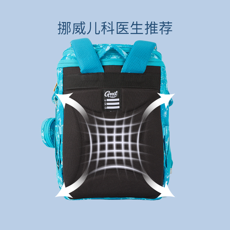 Gmt for kids 小学生儿童护脊书包 1-5年级 GMT-19952-02,0.7kg自重,跑跳无压力负担。前置胸口和S型肩带设计,不易滑落。四向空气导流槽,随时释放热量,保持背部干爽。