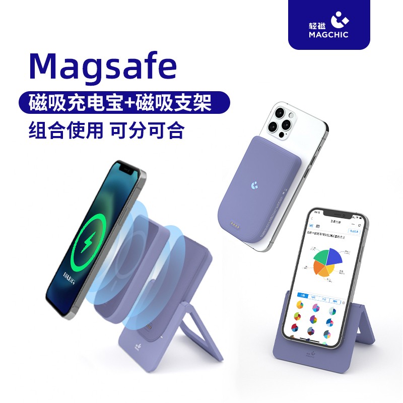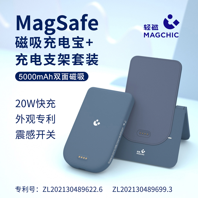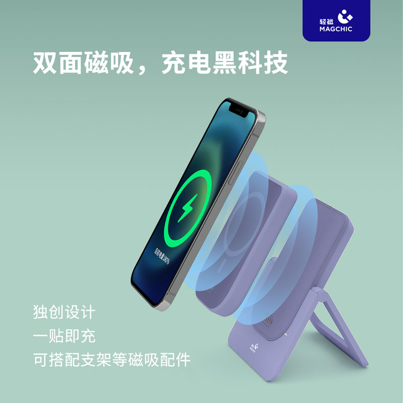 采用ABS手感漆外壳,触感温润细腻,整体重量128g,4730mAh电池。可折叠360度,15W无线快充,20W有线快充。可以充当手机支架、无线充电器、磁吸充电宝。无需手动开关,震动感应即可自动充电。智能充电,全时控温,