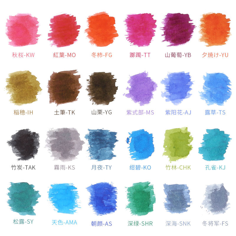 如果说德国LAMY卖的是工业设计,国产英雄卖的是怀旧和一种情怀,那么日本Pilot卖的就是品控质量。Pilot百乐是日本著名的文具品牌,其生产的中性笔、钢笔、铅笔深受消费者喜爱。这款彩墨是百乐色彩雫(读音:na)系列,主打自然风景色,全系列共24个颜色,每款的名字与色度均与日本节气和自然风景相对应,这款墨水为非碳素墨水,规格为15ml,属于通用型墨水,墨水色彩极度丰富,配合透明杆钢笔使用视觉效果极佳。