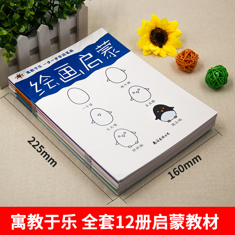这套启蒙绘画书适合2~6岁孩子学画画,共12册,包括动物篇、植物篇、水果蔬菜,等等10多个分类,从易到难,对于初学的孩子,易于操作,不仅能够增强孩子的认知能力,色彩知识和绘画技能,也为今后绘画构图奠定基础。通过有趣的儿歌与分步学画相结合,妙趣横生。