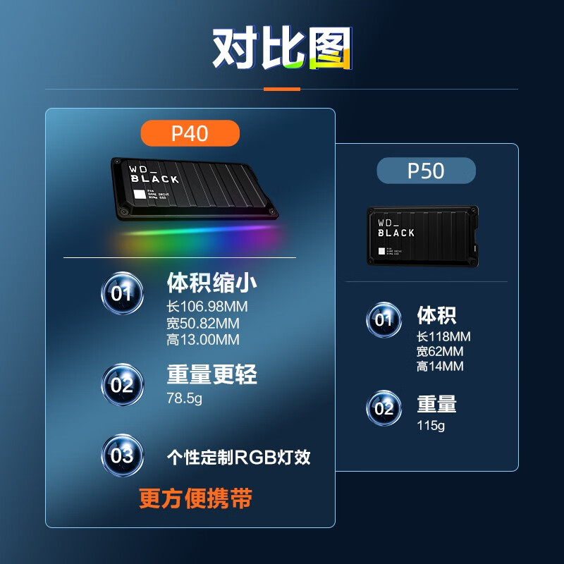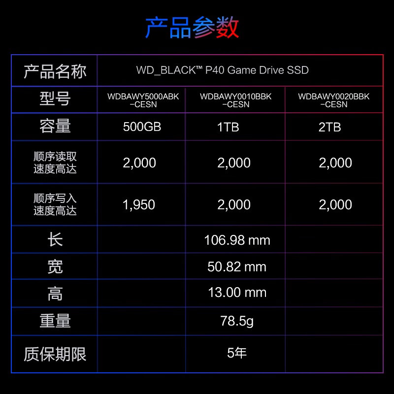 当前的位置: 首页 > 今日值得买 > 西部数据(WD) 移动固态硬盘BLACK P40 RGB灯效USB3.2 PS5拓展便携存储游戏 【新品P40】RGB灯效 2000MB/s 1TB( 性价比之选)