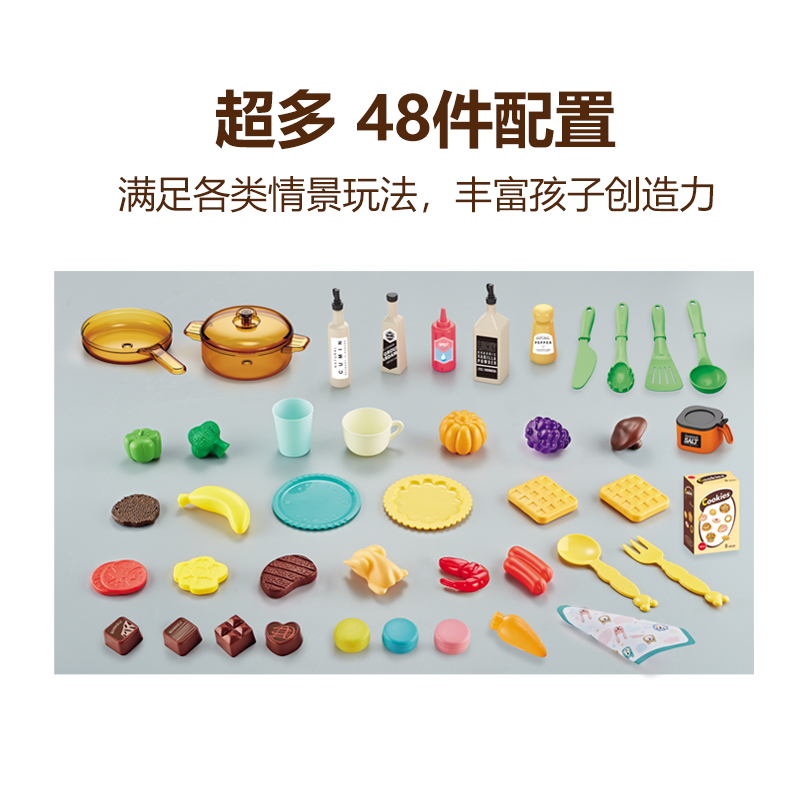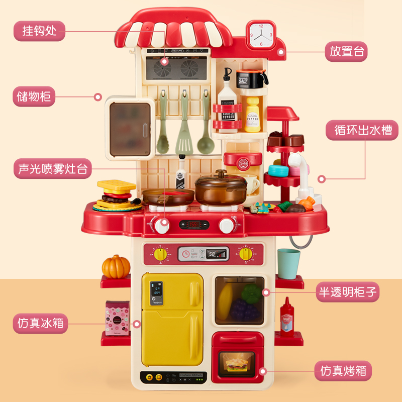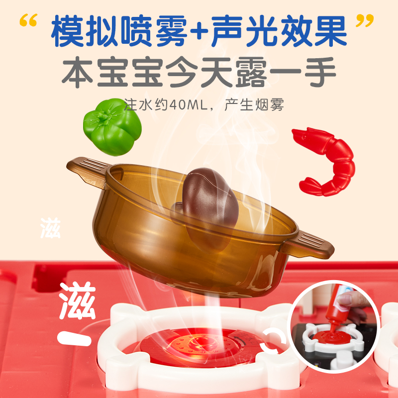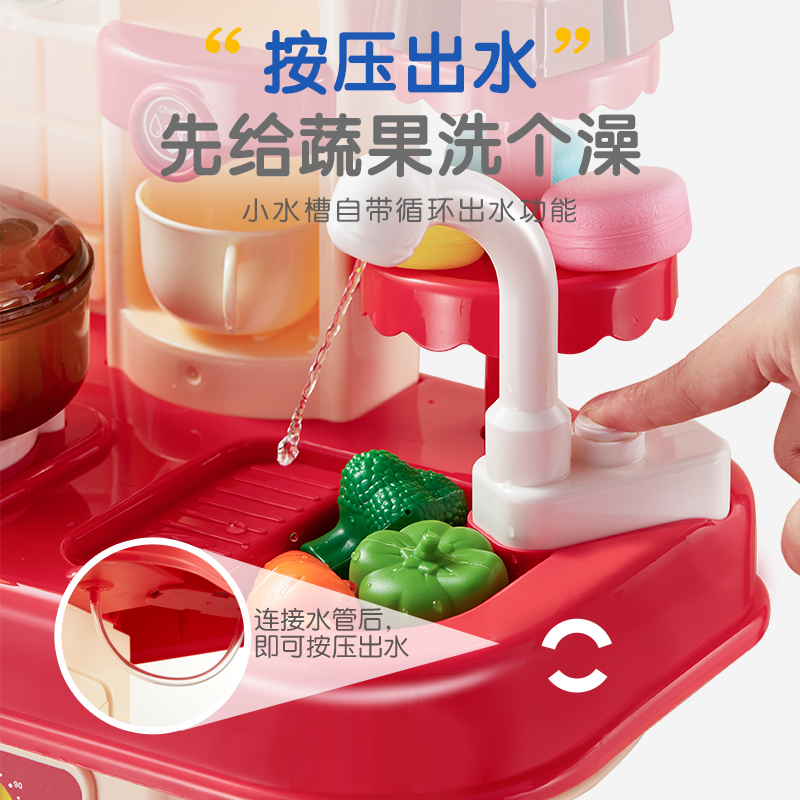 此款儿童过家家厨房玩具,仿真做饭迷你厨具,会出水的厨房,出水功能,炫酷灯光,模拟餐具,动感音效,模拟生活场景,体验烹饪兴趣,培养动手能力,边玩边学,多种模拟厨房。