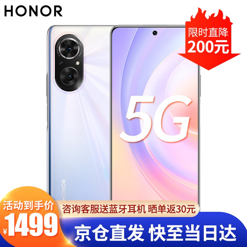 荣耀50 SE正面采用了一块6.78英寸的超窄边全视屏,屏幕边框仅为1.1mm,支持120Hz高刷新率,和240Hz的高触控采样率,还配备了居中式的挖孔广角前摄,带来了94.3%的高屏占比。荣耀50 SE提供8GB+128GB和8GB+256GB两种运存版本,配色则有流光幻镜、魅海蓝、亮黑色三种可选。