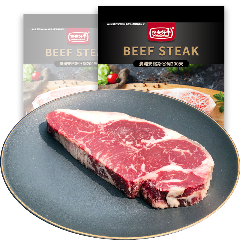 农夫好牛黑安格斯厚切西冷牛排,主要由上腰部脊肉构成,口感韧度强,纤维细腻,嚼劲十足。厚切,口感更醇厚饱满,肉细多汁,口感鲜嫩。拎起一小块牛排丢到嘴里,能清楚感受到汁水随着牙齿的咀嚼而散溢开来,牛排的肉香很好地传递到舒展口腔的每一个味蕾,在其中盘旋游走,把牛肉那种原始的口味发挥得淋漓尽致。规格:300g。