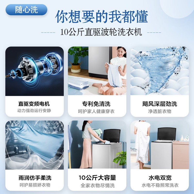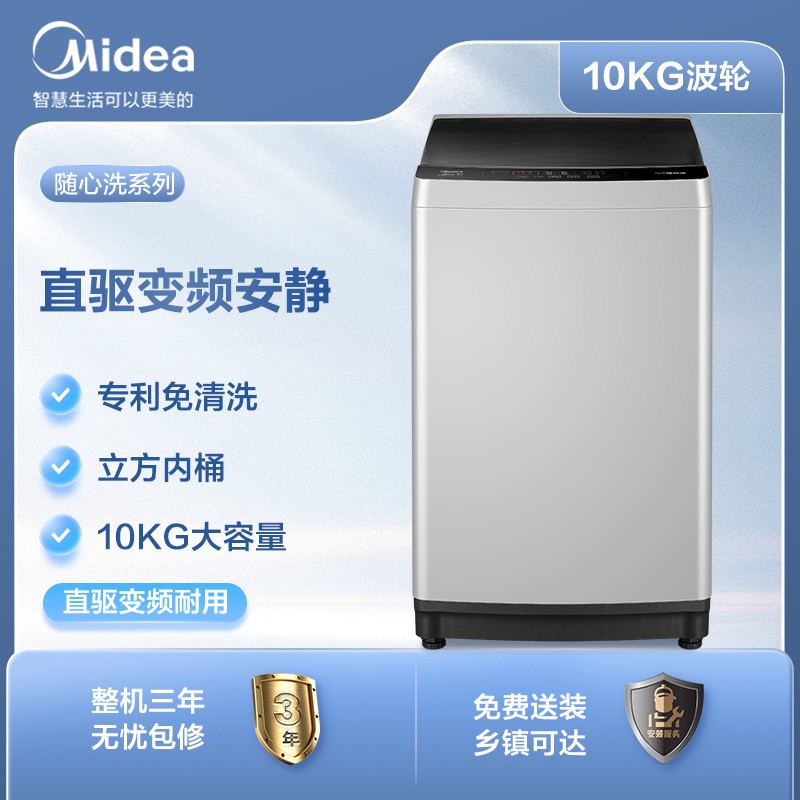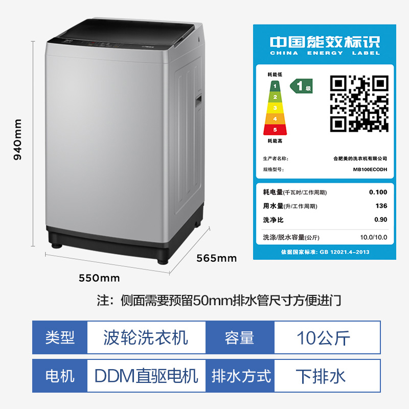 美的 MB100ECODH 波轮洗衣机,它拥有了10公斤大容量,具备了专利免清洗、水电双宽,十年桶如新。支持中途添衣,脱水功能,儿童安全锁。产品尺寸(深×宽×高)565*550*955mm。