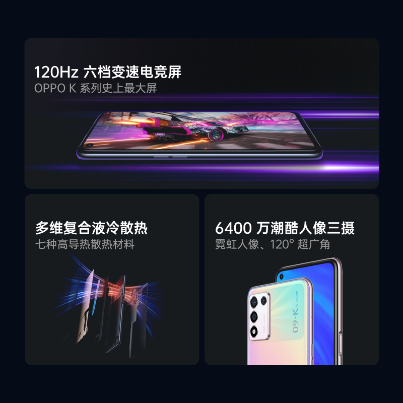 屏幕方面,OPPO K9s采用6.59英寸LCD超大屏,屏幕占比高达90.8%,分辨率为1080x2412,支持100%DCI-P3色域,支持120Hz高刷六档调节,屏幕亮度最高可达600nit,屏幕显示效果出色。