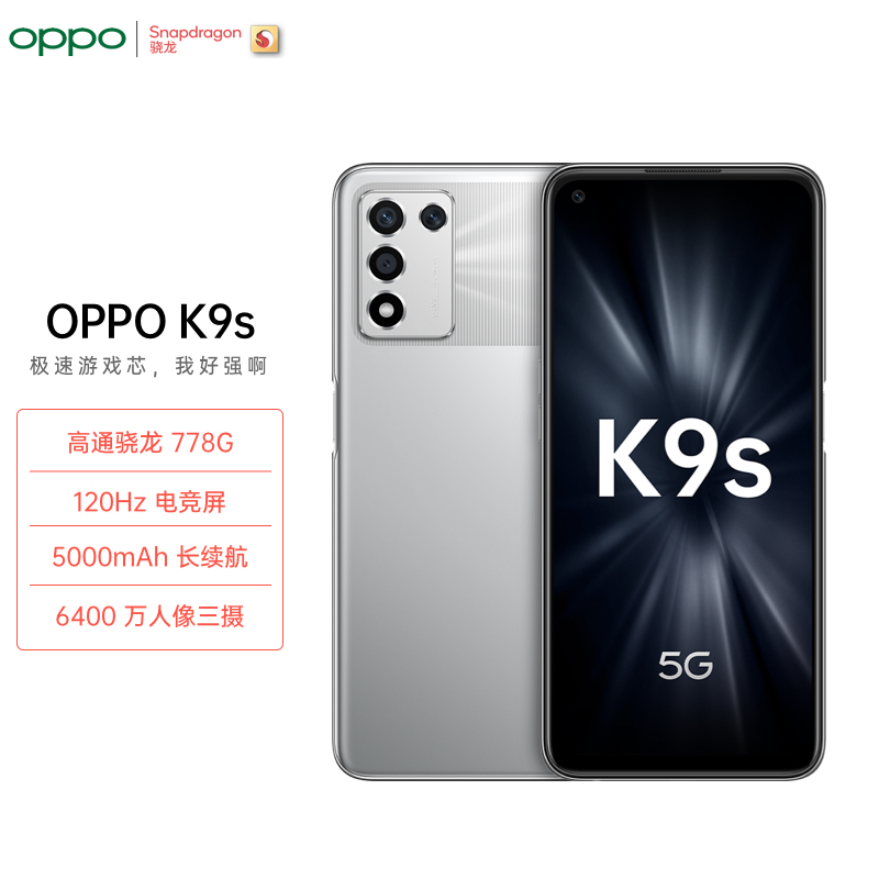 性能方面,OPPO K9s搭载高通骁龙778G移动平台,高通骁龙778G采用4颗A78高主频大核,最高主频高达2.4GHz,同时配合虚拟内存拓展技术,支撑最高5GB虚拟内存拓展,让多任务运行更加流畅,安兔兔跑分达54W,为用户带来更低的功耗,更强的性能。