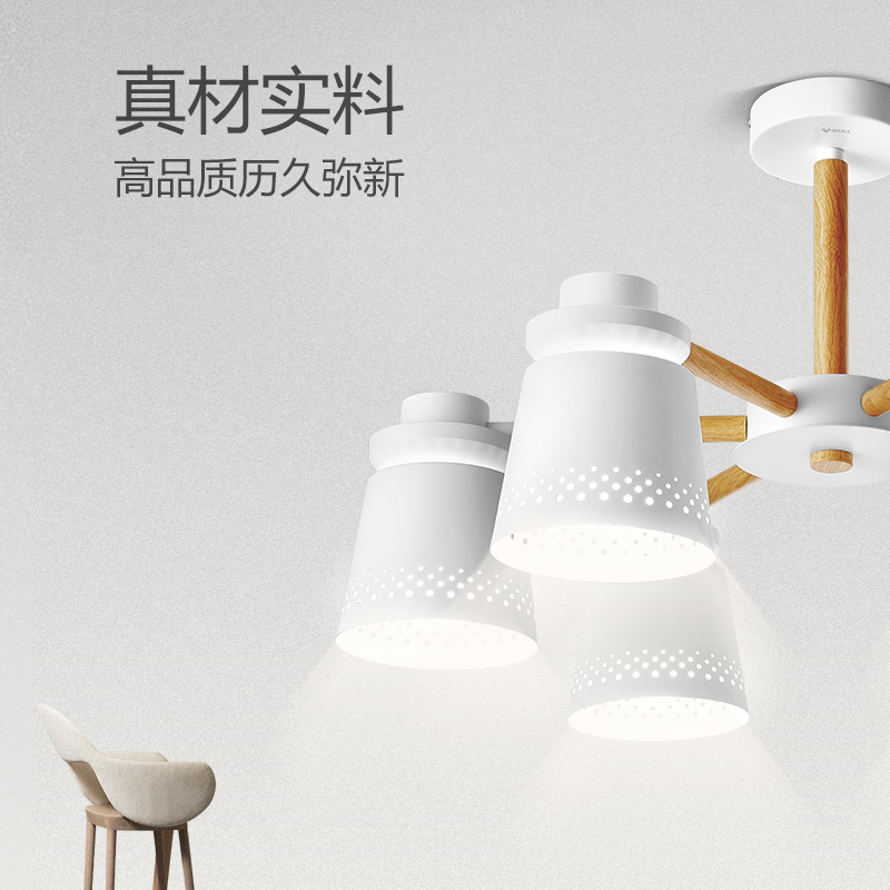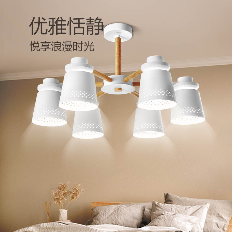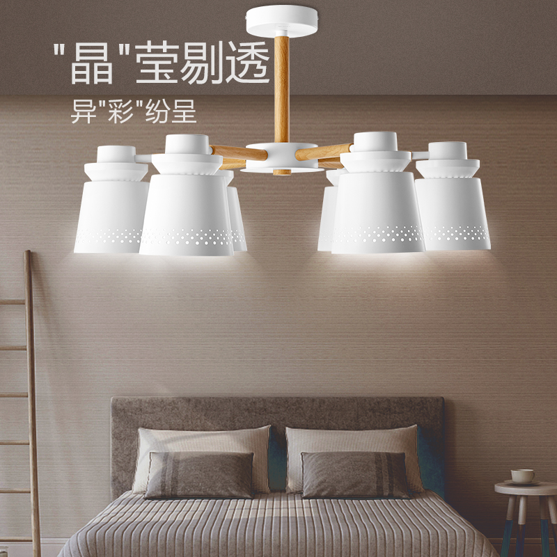 灯罩上下镂空设计,开灯时,光线透过灯罩背面几何形 散射开来,如梦似幻,与照明光线和谐相融,更富层次感。