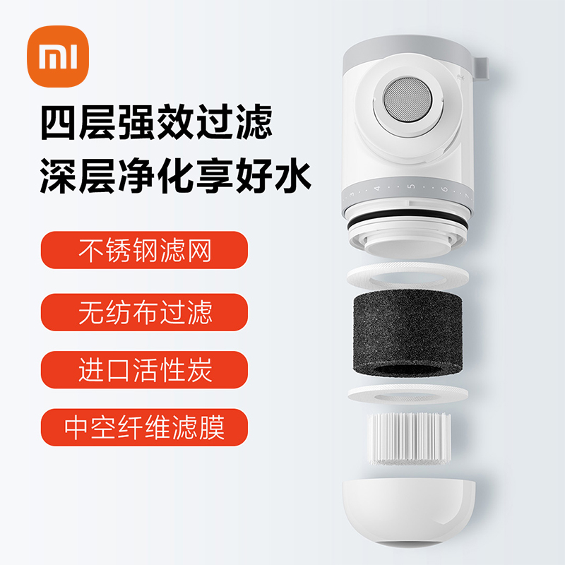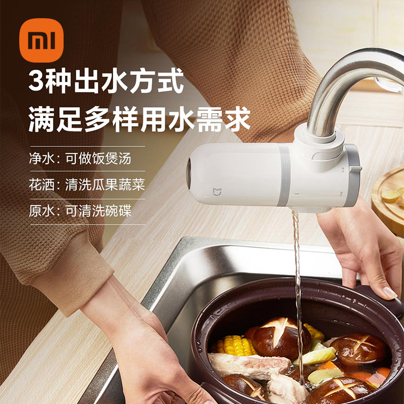 MI小米米家MU11型龙头净水器,高效滤除有害物质,1机4芯,透明滤芯观察窗,即时提醒更换滤芯。四层强效过滤,不锈钢滤网,无纺布过滤,进口活性炭,中空纤维滤膜,滤除细菌,保留有益物质。三种出水方式,做饭煲汤用净水,碗碟清洗用原水,洗瓜果蔬菜用花洒,节约净水的同时,还能够延长滤芯使用寿命。产品尺寸305x87x155mm。