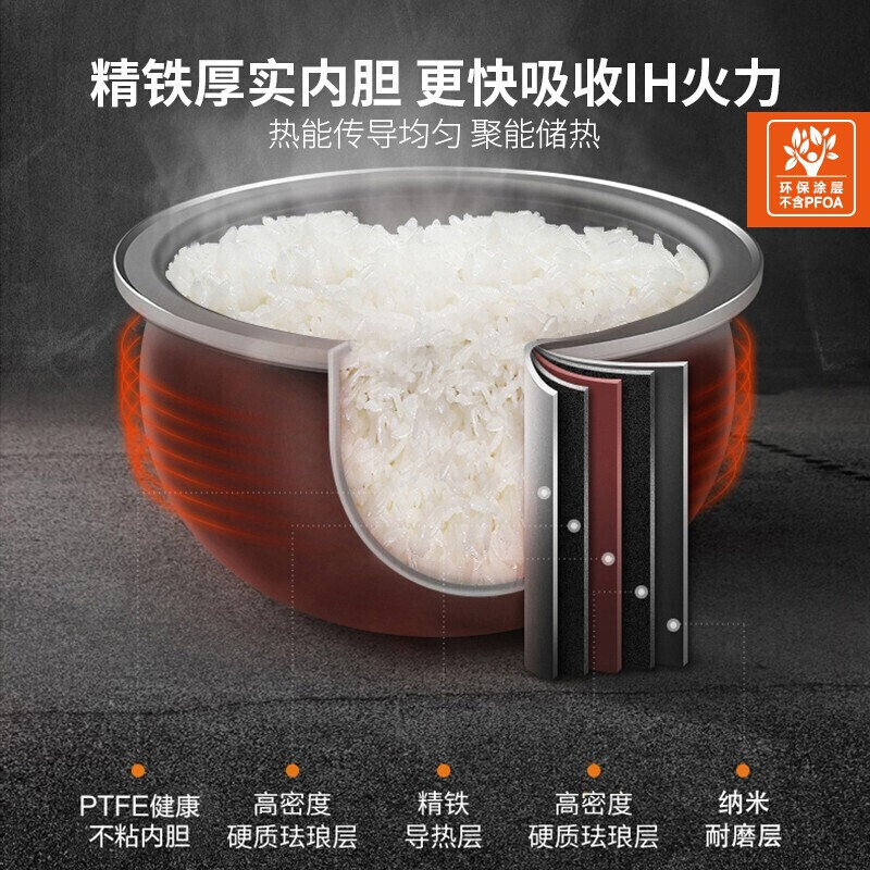 苏泊尔 SF30HC649 IH电磁电饭煲,3L容量,内胆为精铁厚实内胆,重达2斤。更快吸收IH火力,双层叠绕IH电磁加热,加热更快速。拥有微压蒸汽阀,使米饭蓬松软糯。可以蒸煮热饭,粥/汤,煲仔饭,稀饭,柴火饭,快速饭。可用微电脑式进行控制,有预约功能。