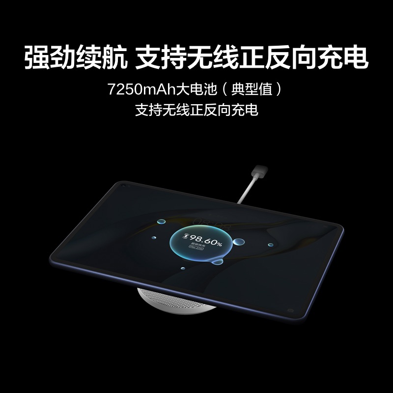 在音频方面,搭载Histen 7.0 多声道 3D 立体音效,四声道&四扬声器音响系统,营造饱满、清晰而有深度的环绕流动音效;在续航方面,HUAWEI MatePad Pro可进行正反向无线充电,支持 27W 正向无线充电,最大 10W 反向无线充电。也支持 40W 有线华为超级快充,标配 22.5W 有线快充,内置 7250mAh(典型值)大容量电池。