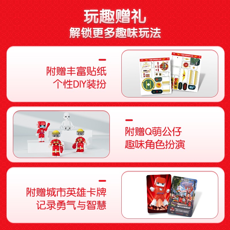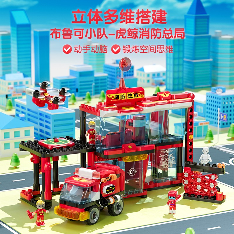 布鲁可小队虎鲸消防总局套组采用大颗粒积木设计,拼插完成的成品尺寸相当大,可玩性出色。该套组拥有8款百变造型,分别为休闲度假避暑屋、红色机器人、超级闪电跑车、海上作战潜水艇、空中搜救巡逻机、联络通讯电话仪、作战虎鯨和勇者之剑。拼插完成后可进行角色扮演,变身“小小消防员”,模拟消防备战,趣味十足。该套组内含365块积木颗粒、4个人仔,适合5岁以上宝宝进行游玩。