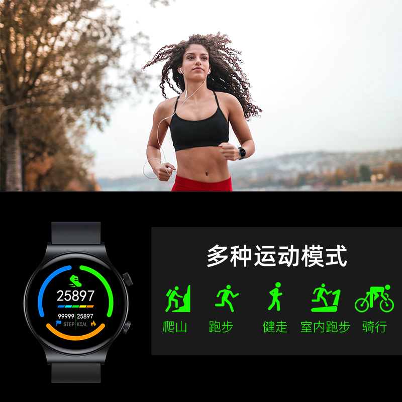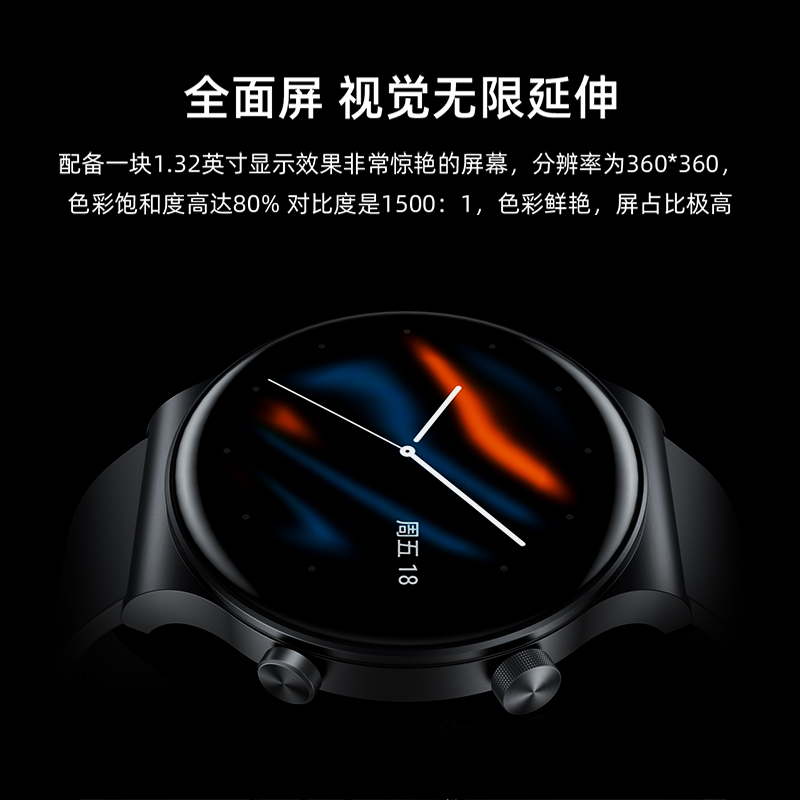 GT5 Pro 智能手表拥有运动精算,蓝牙通话,表盘下载,心率检测以及旋转按钮。配备1.32英寸显示效果非常惊艳的屏幕,分辨率为360*360,色彩饱和度高达80%,对比度1500:1,海量的在线表盘满足多元化审美,可随心搭配,采用高性能低功耗FR5082蓝牙5.0芯片,无论图形处理,还是计算速度比上一代提升50%以上,通话、音乐单独蓝牙3.0芯片处理。