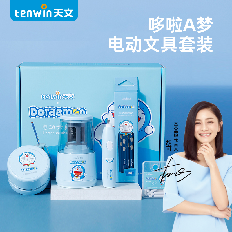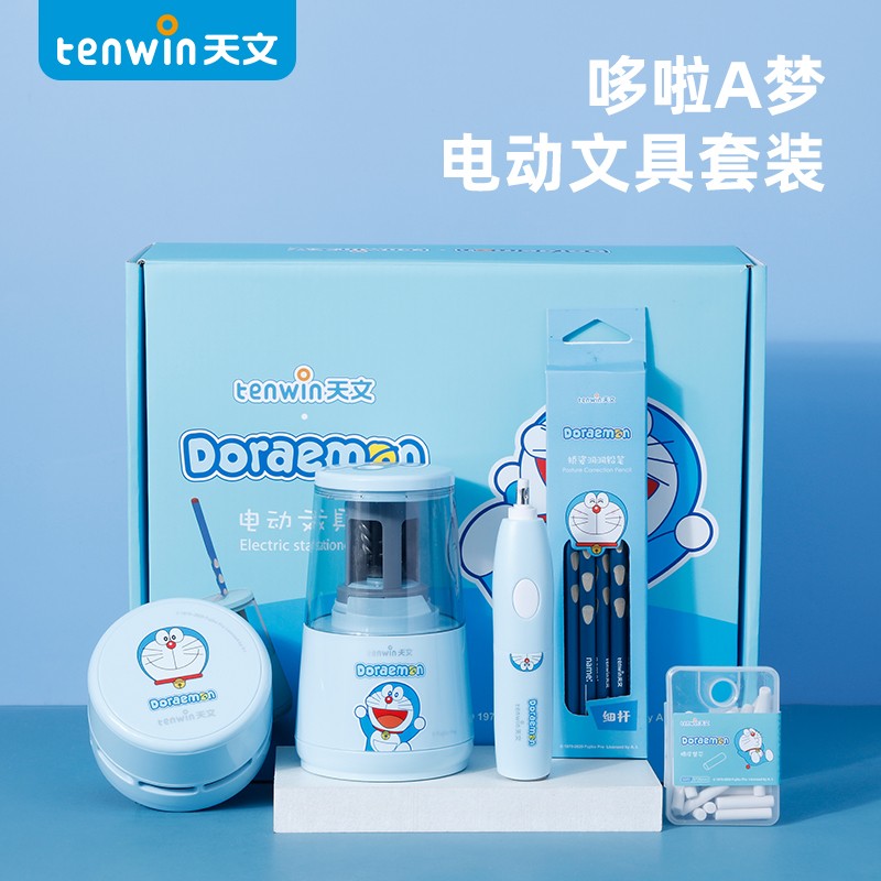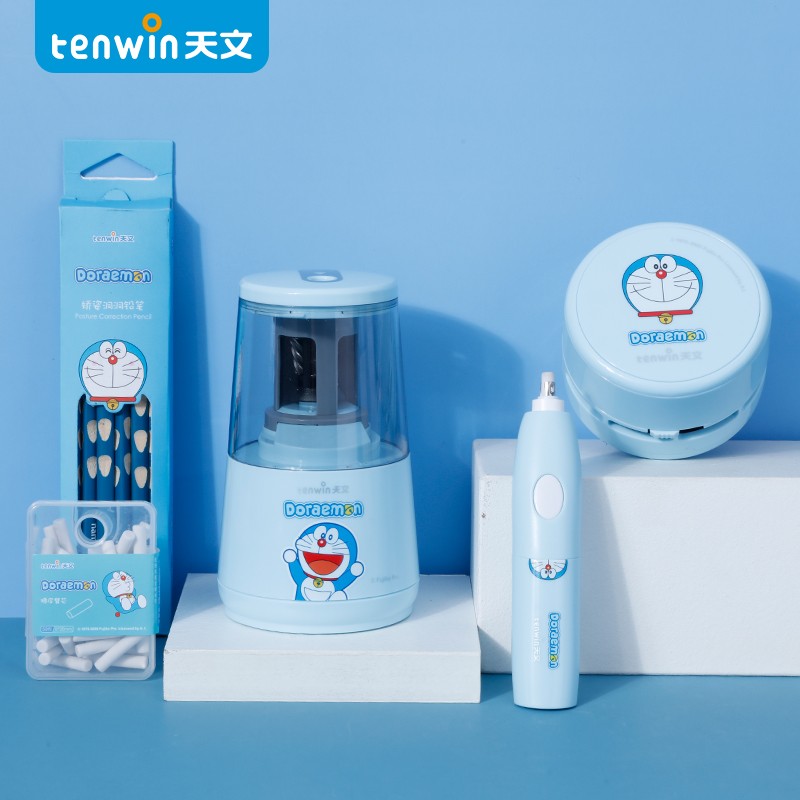 哆啦A梦正版授权,萌力升级。电动削笔机,轻压削笔,5秒削尖立停,高效触手可及。高精度材质,削笔光滑,不易受损。6-8mm书写铅笔、绘画彩铅等常规笔杆均可使用。HB矫姿洞洞笔,符合人体工学,矫正握笔姿势,书写不费力。电动橡皮擦,轻松擦拭,不伤纸张~