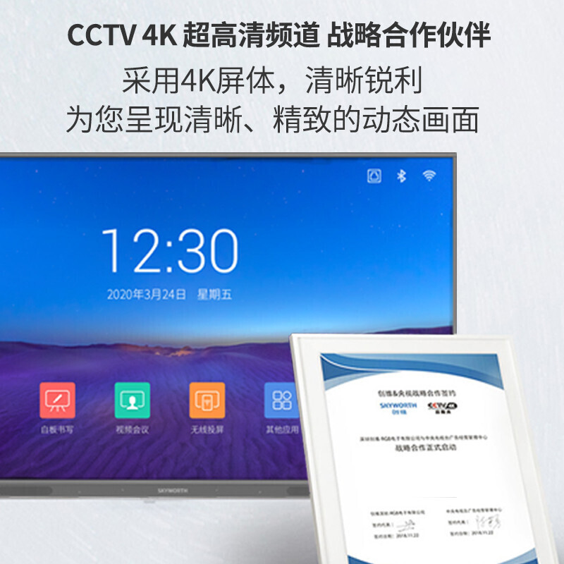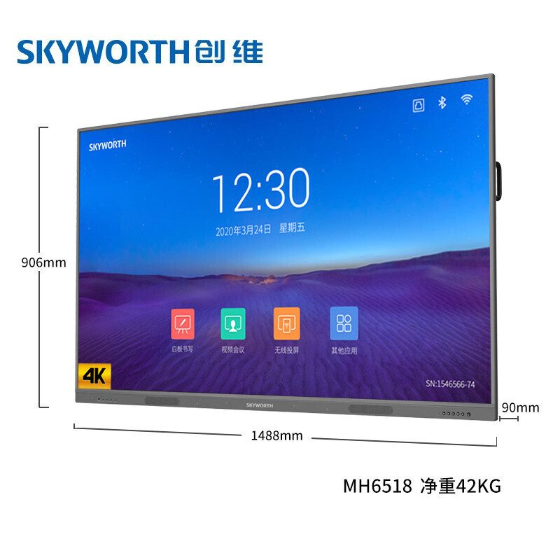 创维 MH6518 65英寸会议平板支持4台设备同时投屏,16个设备同时在线一分四屏大小屏互控,多人演讲随心所欲可独立控制每个分屏的声音、位置、大小。在电脑画面投屏时,不仅能控制投屏设备来实现画面变换,还能通过控制会议一体机,反控投屏设备。
