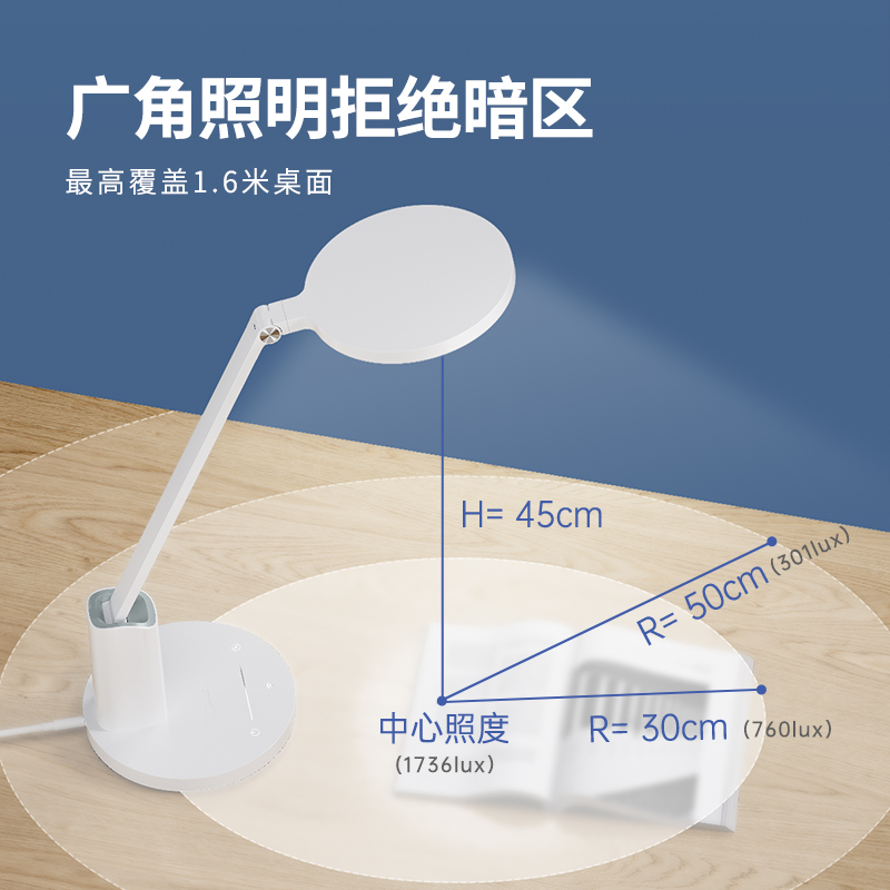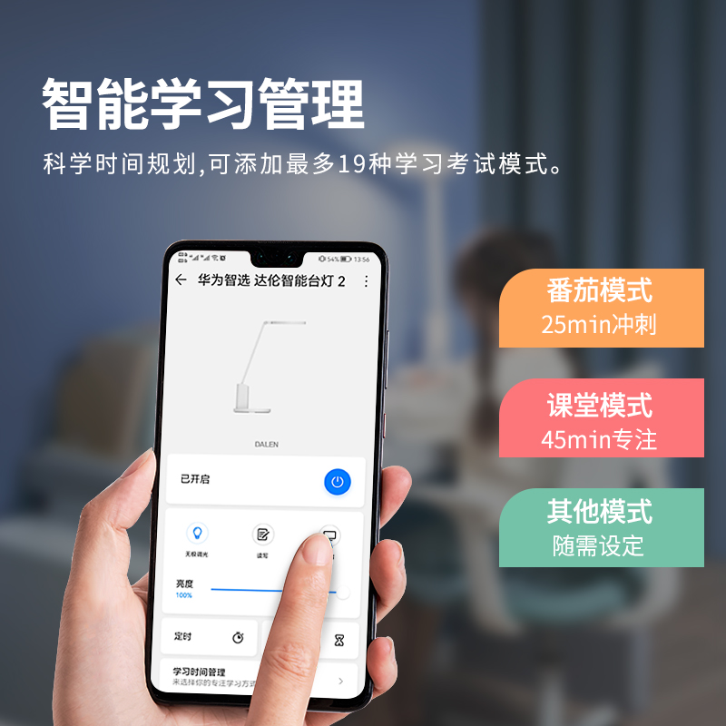 华为智选智能台灯2采用国AA级照度,能够点亮整个桌面,最高覆盖1.6米书桌,多人合用也能明亮;采用点散式导光板+扩散板设计,灯珠侧发光通过点散式导光板使光源均匀分布发光面让光线更均匀;显色指数Ra大于95,光线可以使画面饱和度更高,细节刻画真实展现,绘画更精彩;拥有多种学习管理模式,能够真实模拟学习/考试环境,可用性更高。