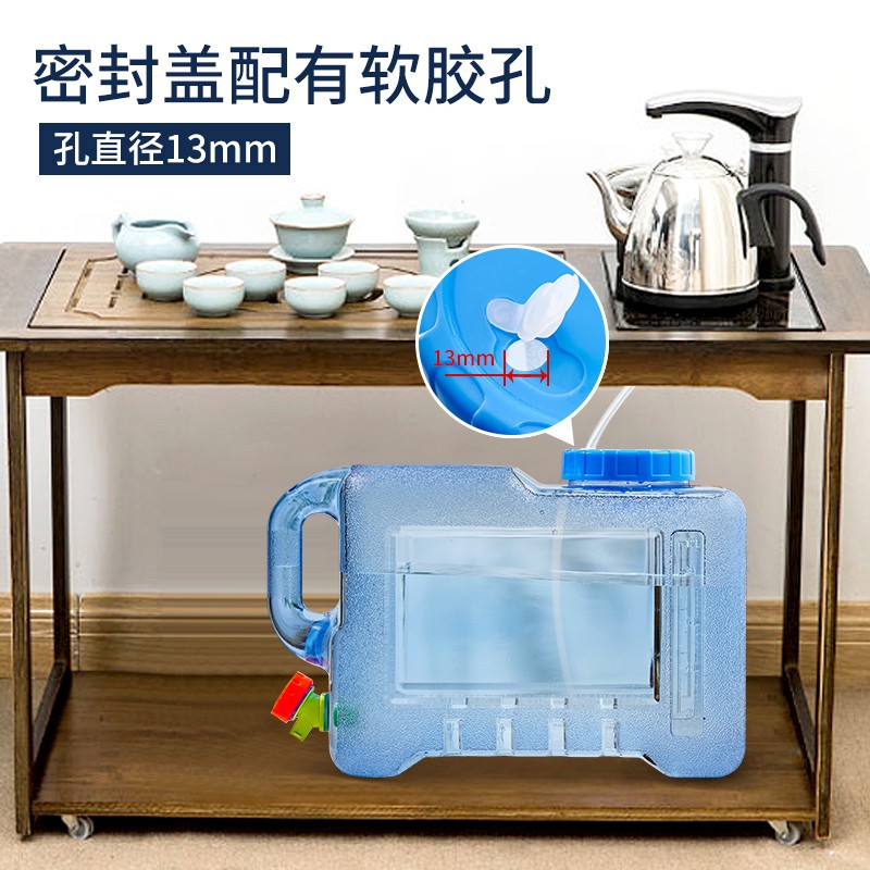 选用优质PC材料,耐热,抗冲击,不易变形。户外便携,纯净方水桶,承重强结实耐用。多功能有孔盖设计,密封盖配有直径13mm的软胶小孔,可用作进水桶或者排水桶。带水龙头储水桶,家用、车载、旅行、野营都非常实用。耐高温120度不易变形。桶盖內硅胶封圈,确保密封不漏水。