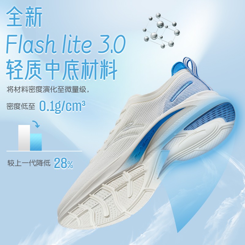ANTA 安踏 氢跑鞋3代 112125540 男子运动鞋,出色细腻、异形复合结构,纱线具有强大毛细效应,可以实现速吸、速干的呼吸作用,大底纹路设计灵感,源于汽车轮胎,后跟橡胶贴合,防滑性耐磨性提升。款式采用轻盈透气面料,排汗透气性佳,同时采用无缝工艺,提供更加舒适顺滑的脚感。