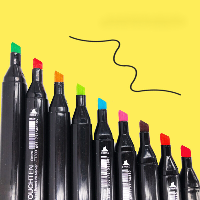 此款马克笔有双头设计,圆头宽度1mm,马克笔的圆头一般用来刻画物体细节;宽头宽度6mm,马克笔的宽头一般用来大面积润色。