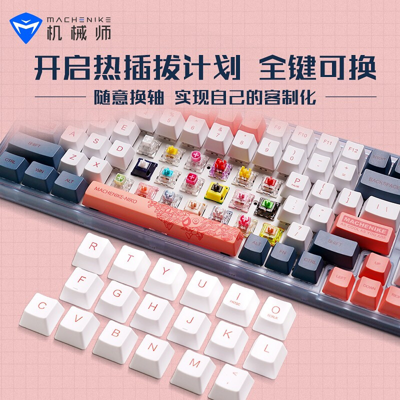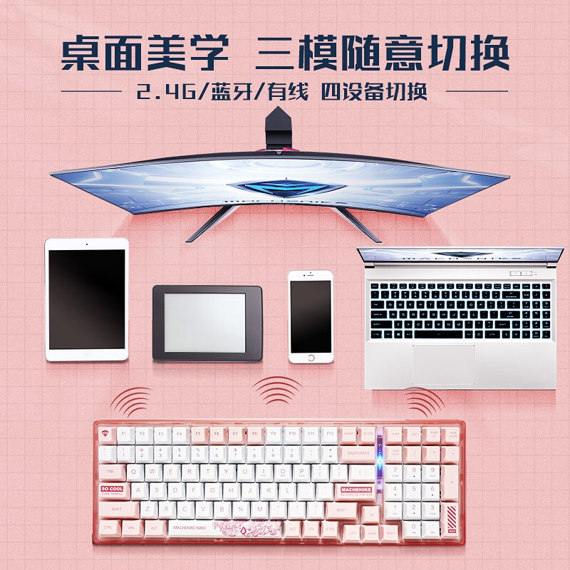 械师K600三模热插拔键盘,2.5G/蓝牙/有线四设备切换,支持全键无冲,全键标配热插抜底座,兼容三脚/五脚轴可适配市面大部分的机械键盘轴体,搭配CAP银轴,手感优秀,一致性强,机械寿命长达8000万。高品质PBT,热升华键帽,字符清晰,耐磨不掉色,手感细腻不打油。