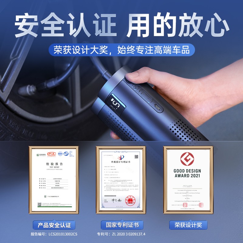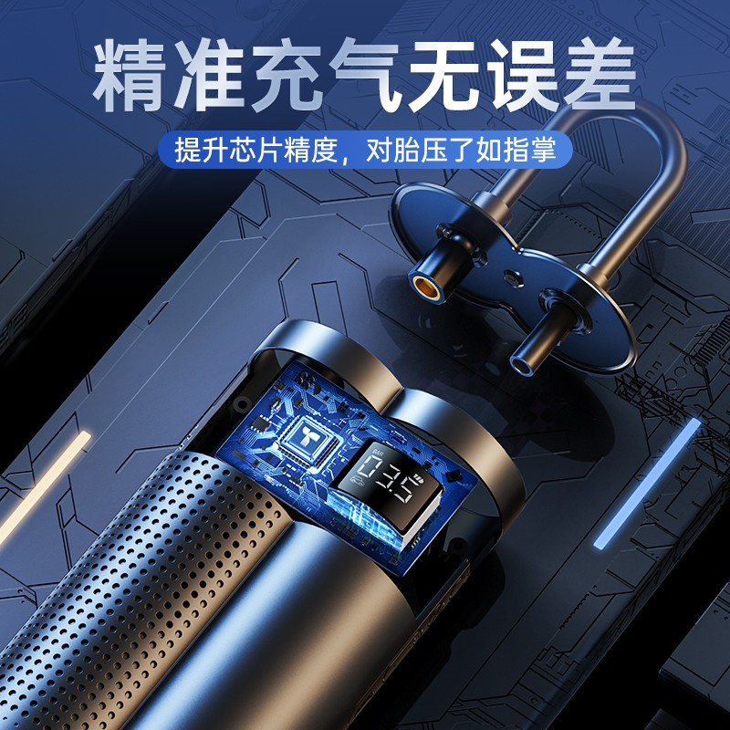 高档磨砂材质,体面奢华大气;应急,快速充气,防止爆胎;快充黑科技,20秒快速补气;预设胎压,数字显示,充满即停;三重降温设计,快速散热不烫手;四种模式可选,自行车,摩托车,小汽车,篮球均可使用;迷你小巧,方便携带;声学降噪,不刺耳