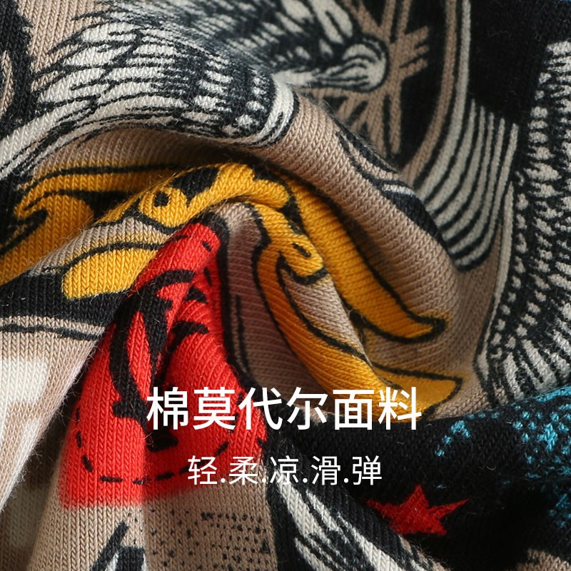这款男士棉莫代尔平角内裤,丰盈新色,俏皮印花,更多选择。宽边弹力腰头,不勒无拘束穿着舒适。柔软亲肤,选用舒适面料,不易起球,不易变形,穿着轻松舒适。U型仓凹凸设计,立体裁剪,使得穿着舒适自由无压力。